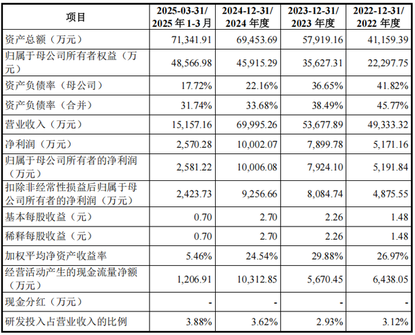 业绩表现上,2022年至2025年第一季度,中塑股份主营业务收入分别为 4.93亿元、5.28亿元、6.89亿元、1.51亿元;盈利能力持续提升,净利润从 2022 年的 5171.16 万元增长至 2024 年的1亿元,2025年第一季度净利润达 2570.28 万元,展现出较强的盈利水平与成长潜力。