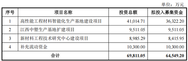 据招股书内容,中塑股份本次计划募集资金 6.45 亿元,资金将定向投入 “高性能工程材料智能化生产基地建设项目”“江西中塑生产基地扩建项目”“新材料工程技术研究中心建设项目” 等重点项目。这些项目建成后,公司将聚焦多项前瞻创新研发任务,重点攻关生物基长碳链尼龙、无卤阻燃特种高温尼龙、6G 介电材料、高性能透明硅共聚 PC 材料、高性能 PC 合金及复合材料、低介电低损耗高分子树脂、吸波工程塑料合金、生物基耐高温聚酰胺 PA10T/X 产业化关键技术及应用等前沿领域。