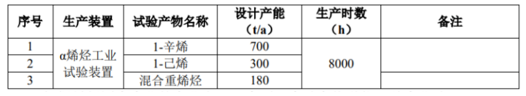 项目名称:1000吨/年α烯烃工业试验装置项目