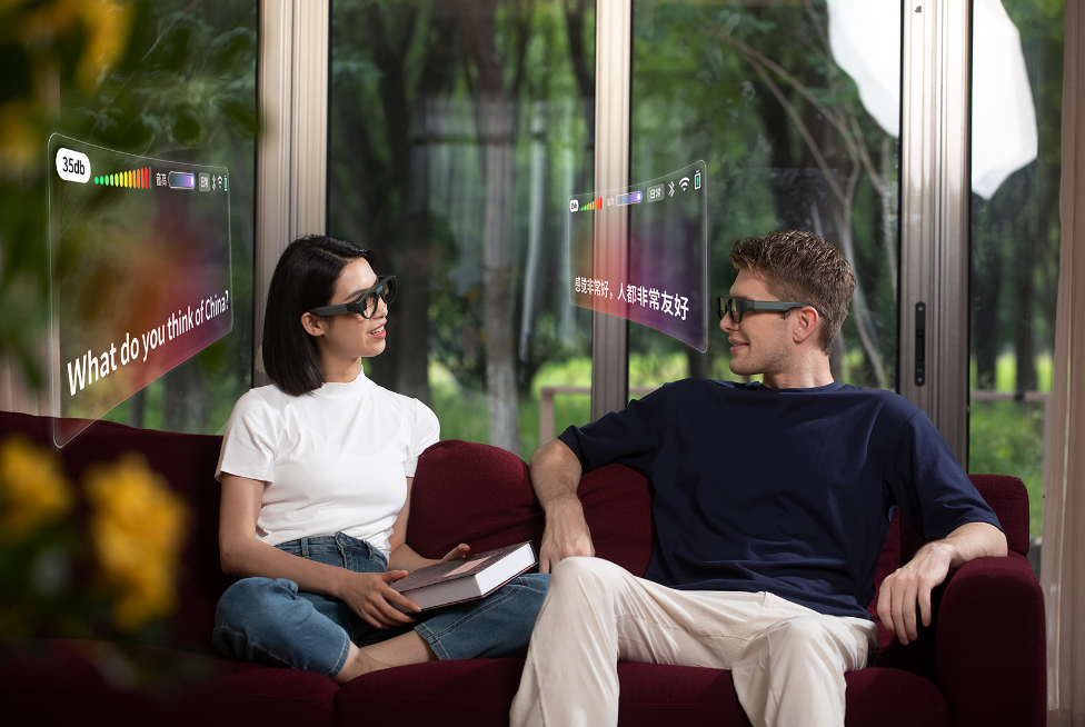 根据世界卫生组织的相关报告,全球约有15亿人(占全球人口总数的20%左右)患有某种程度的听力损失——到2050年,这一数字可能会上升至25亿。此外,随着疫情逐步解除,跨国交流的需求也在与日俱增。听语者AR眼镜可以帮助听障人士解决嘈杂环境中的倾听需求,以及与戴口罩人员交流时的唇语解读问题,帮助商务人士在洽谈中提升沟通效率并推进更流畅的社交互动。亮亮视野采用的自动语音识别技术和人工智能可以在短短几毫秒内创建、传输和显示语音翻译。整合入眼镜镜腿中的算力芯片能够将语音输入转换为文本数据。此外,这款眼镜还可以和智能手机应用程序实现无线连接,完成用户身份认证。