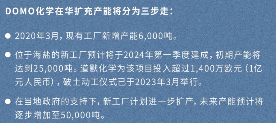 2023年初,道默化学(DOMOChemicals)宣布:已与韩国塑料化合物制造和分销公司MIKAINC签署了制造合同。
