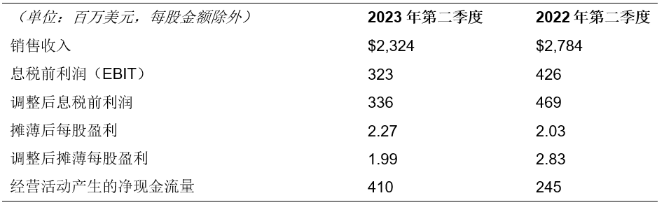 谈及对2023年全年的展望时,Costa表示:“尽管全球经济充满挑战,我们在上半年依然取得了稳健的业绩。面对持续不确定的外部环境,我们坚持做好可控之事,包括坚持严格的定价策略,并压低原材料、能源与分销成本,促进利润率回升,以展现我们卓越商业模式的优势。此外,我们将继续执行成本削减计划,旨在将全年制造、供应链与非制造成本降低2亿美元(扣除通胀)。展望下半年,我们预计汽车、航空与其他部分市场将继续小幅改善。然而,我们已下调了需求增长预期,预计众多终端市场的基本需求将与上半年持平。考虑到需求回升有限,我们预计客户的去库存趋势仍将持续,但幅度将有所下降。为了在此环境中优先保障现金流,我们正采取措施有效削减库存。这一举措加上需求预期下调,将导致下半年的产能利用率下降,对盈利将产生不利影响。基于上述形势与现有措施,我们预计2023年下半年的调整后每股盈利将略低于上半年,全年每股盈利将介于6.50美元与7.00美元之间。此外,我们仍然预计在2023年实现14亿美元的运营现金流。”