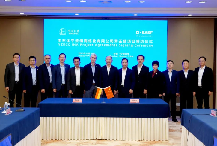 2023年10月10日,中国石化镇海炼化公司与德国巴斯夫公司在镇海炼化举行异壬醇项目签约仪式。