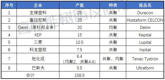目前,世界聚甲醛工业化生产企业有近20家,据统计,全球聚甲醛的产能约为200万吨/年,国外聚甲醛产能包括美国杜邦和塞拉尼斯、德国巴斯夫、日本旭化成和宝理塑料等公司均有布局。