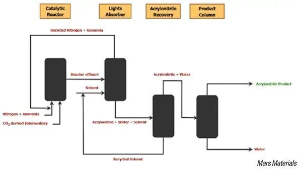 美国得克萨斯州休斯顿的初创公司马斯材料公司(Mars Materials,官网:marsmaterials.tech)开发了一种替代工艺,利用捕获的二氧化碳和生物基原料,不仅提高了丙烯腈的产率,还消除了关键有毒副产物的生成。